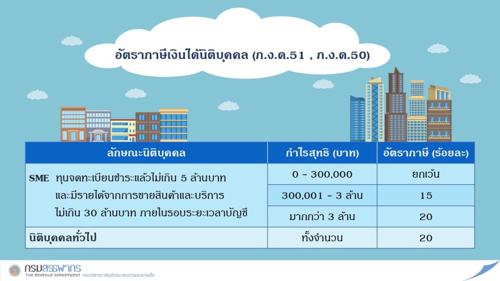คู่มือภาษีเงินได้นิติบุคคล สำหรับผู้ประกอบการ SME ที่มากรมสรรพากร Leave a Reply Cancel replyYour email address will not be published. Required fields are marked *Name * Email * Website Comment * Save my name, email, and website in this browser for the next time I comment. Δ Tags:SMEคู่มือภาษีภาษีSMEภาษีเงินได้นิติบุคคลSMEเปรียบเทียบอัตราภาษีเงินได้นิติบุคคลกับ SME