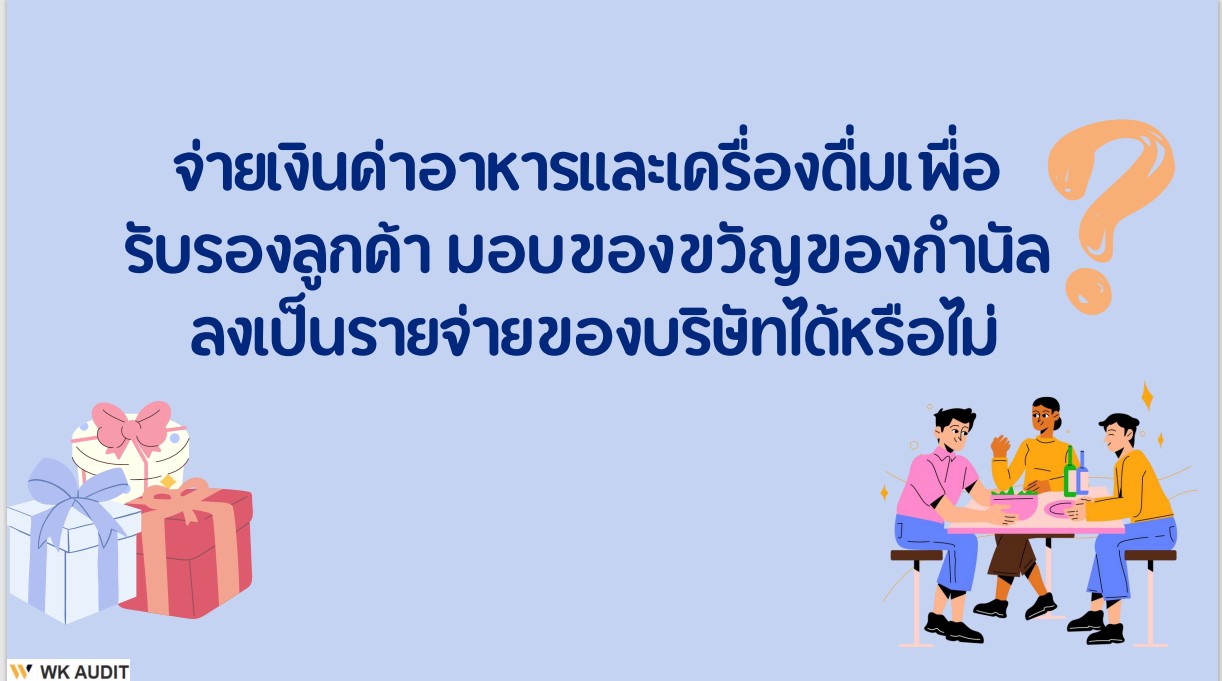 จ่ายเงินค่าอาหารและเครื่องดื่มเพื่อรับรองลูกค้า มอบของขวัญของกำนัล ลงเป็นรายจ่ายของบริษัทได้หรือไม่