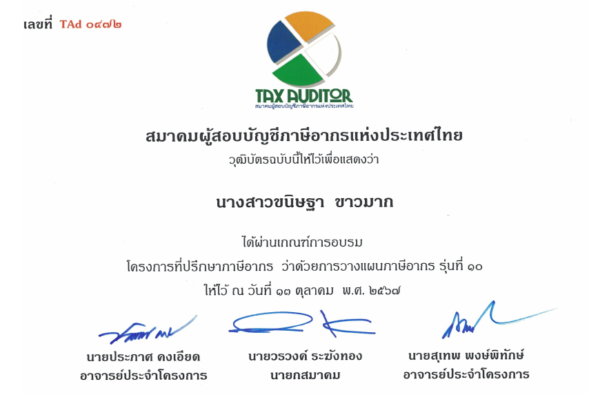 หลักสตรูที่ปรึกษาภาษีอากร รุ่น 10 (TAX ADVISOR 10)