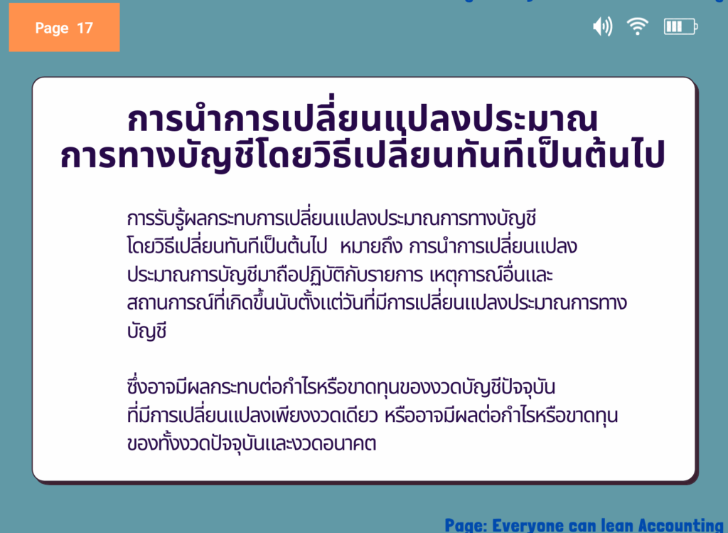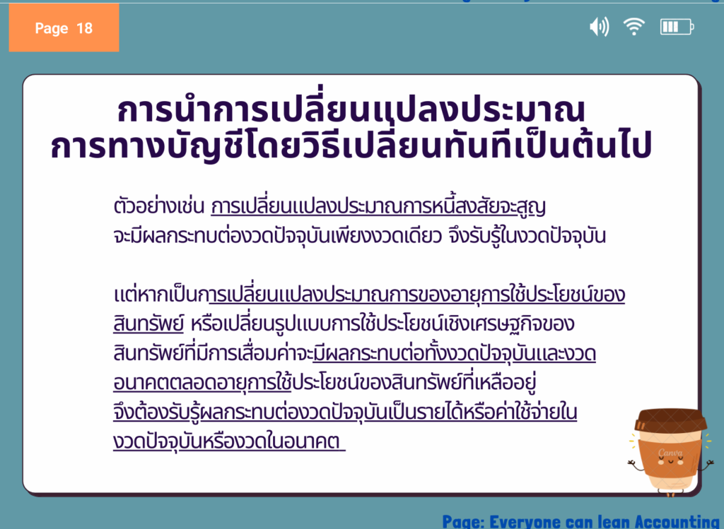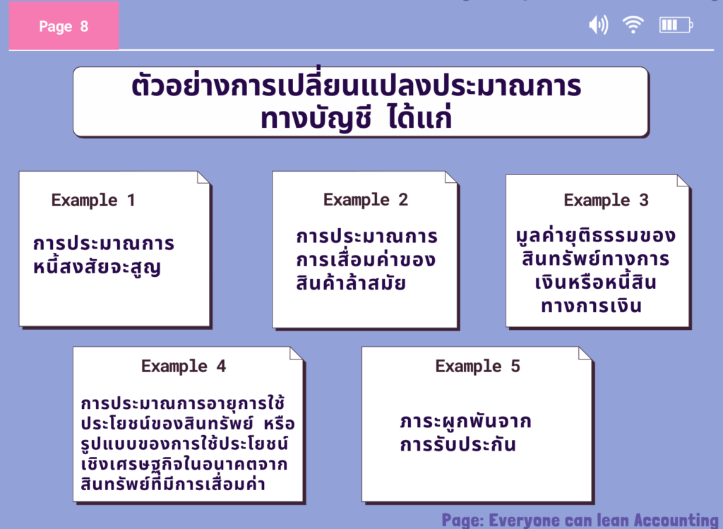 ตัวอย่างการเปลี่ยนแปลงประมาณการบัญชี