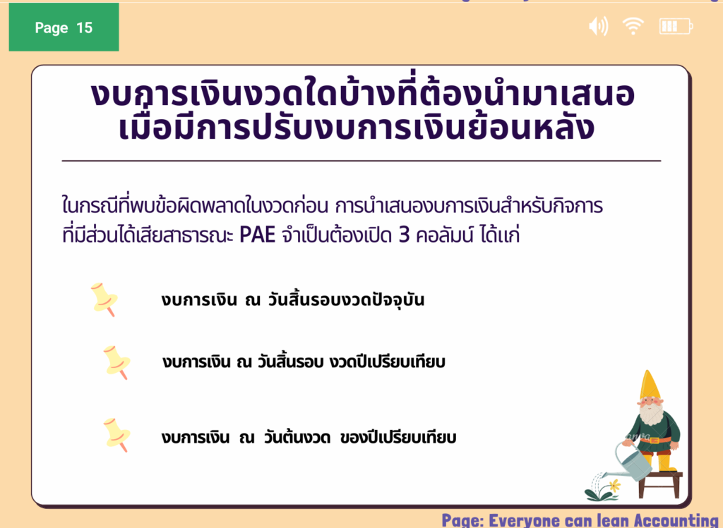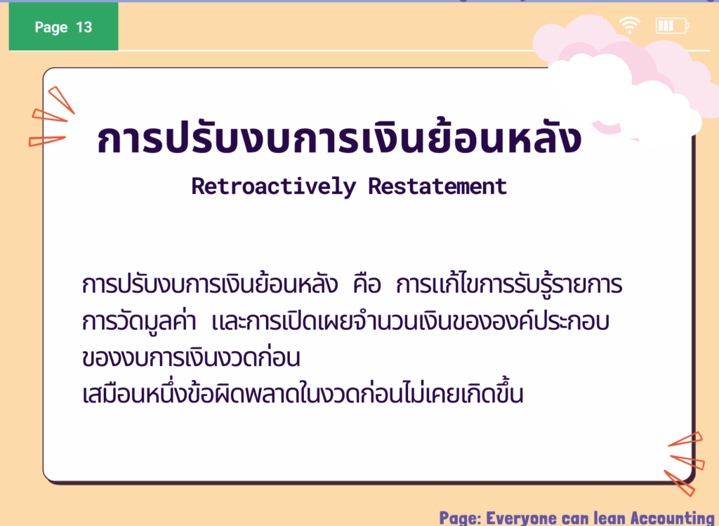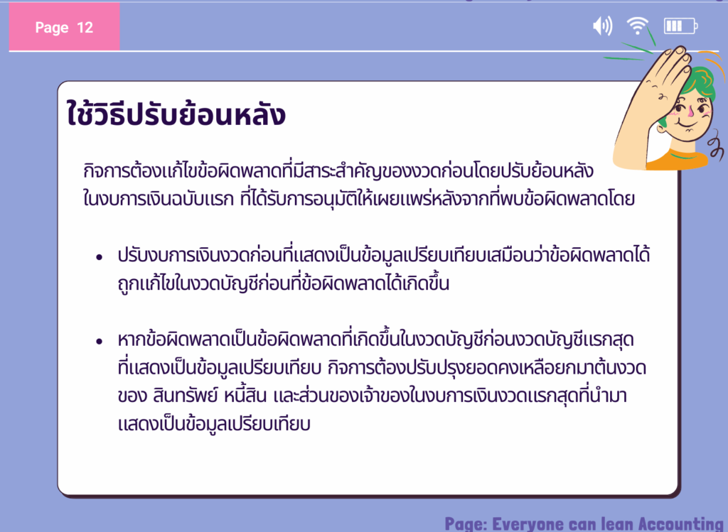 ปรับงบการเงินงวดก่อนที่แสดงเป็นข้อมูลเปรียบเทียบเสมือนว่าข้อผิดพลาดได้ ถูกแก้ไขในงวดบัญชีก่อนที่ข้อผิดพลาดได้เกิดขึ้น
