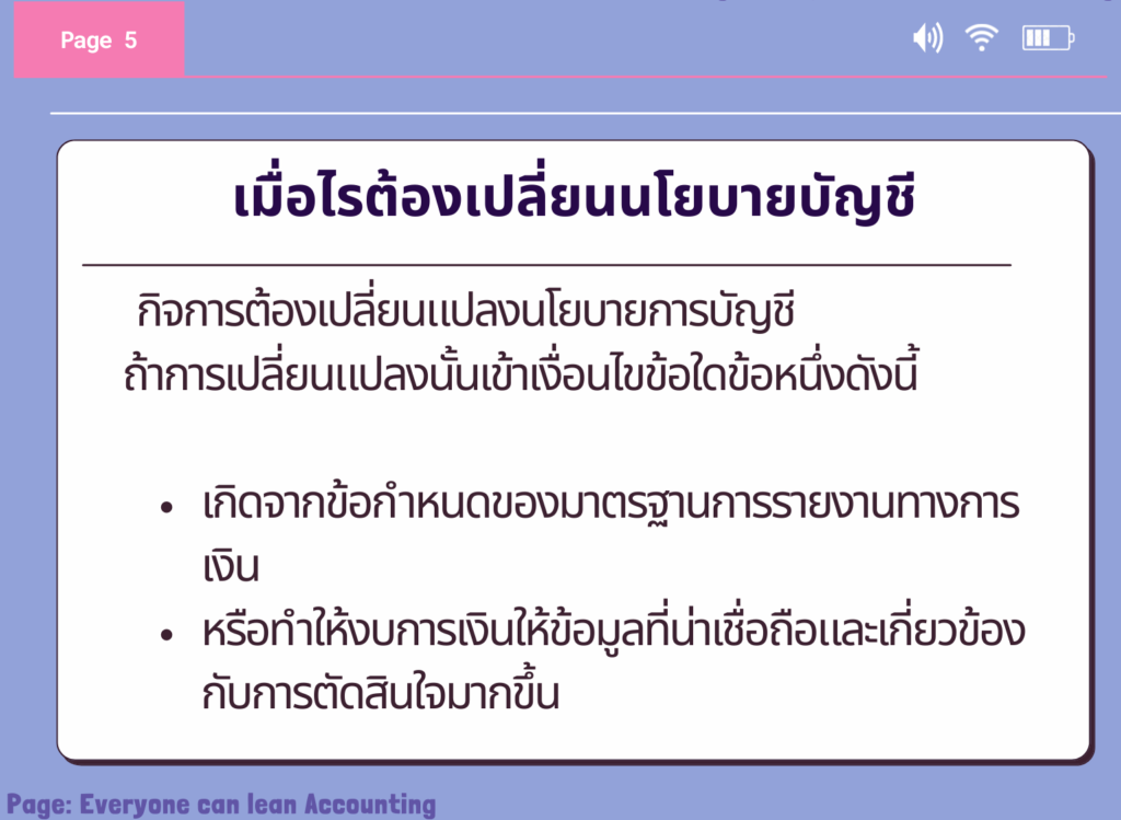 เมื่อไรต้องเปลี่ยนแปลงนโยบายบัญชี